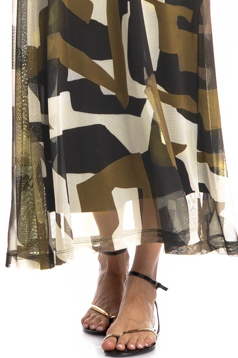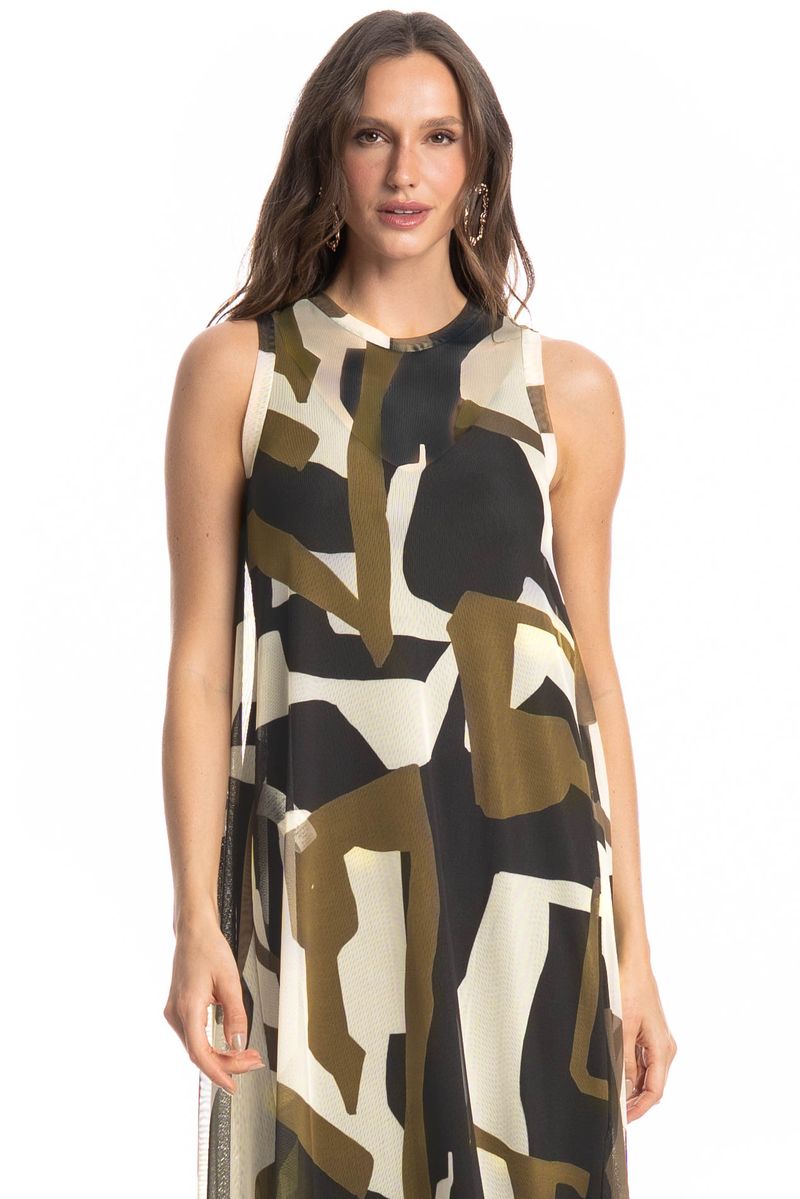Confeccionado em Tule Estampado, tecido leve, fino e com transparência. Não amassa e possui um caimento perfeito, proporcionando peças super fluidas.