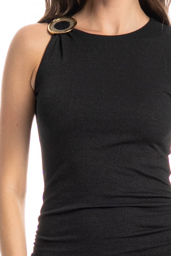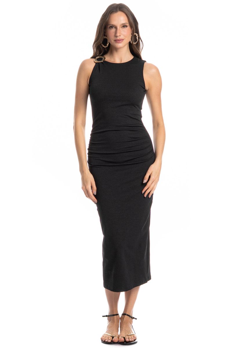 O Vestido Estocolmo é puro charme e elegância! Com modelagem ajustada ao corpo, valoriza a silhueta com sutileza e sofisticação. Possui decote redondo e detalhe para a fivela no ombro, que adiciona um toque moderno e diferenciado à peça. O drapeado na região da cintura garante um caimento perfeito e favorecedor. Versátil e atemporal, é ideal para compor produções que vão do dia à noite com muito estilo.