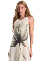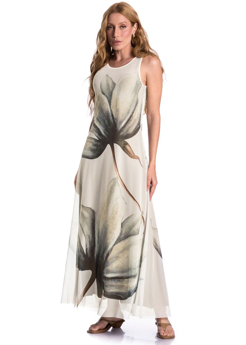 Vestido Evasê De Tule Brisa é a definição de estilo e frescor para os dias mais quentes! Com modelagem regata e saia em corte evasê, ele valoriza a silhueta com leveza. O decote possui acabamento em elástico embutido, garantindo conforto e melhor ajuste. O comprimento é longo e conta com forro em todo o corpo. O destaque fica por conta da sua estampa exclusiva e encantadora, um verdadeiro charme! A escolha ideal para viver o melhor da estação com leveza e personalidade.