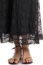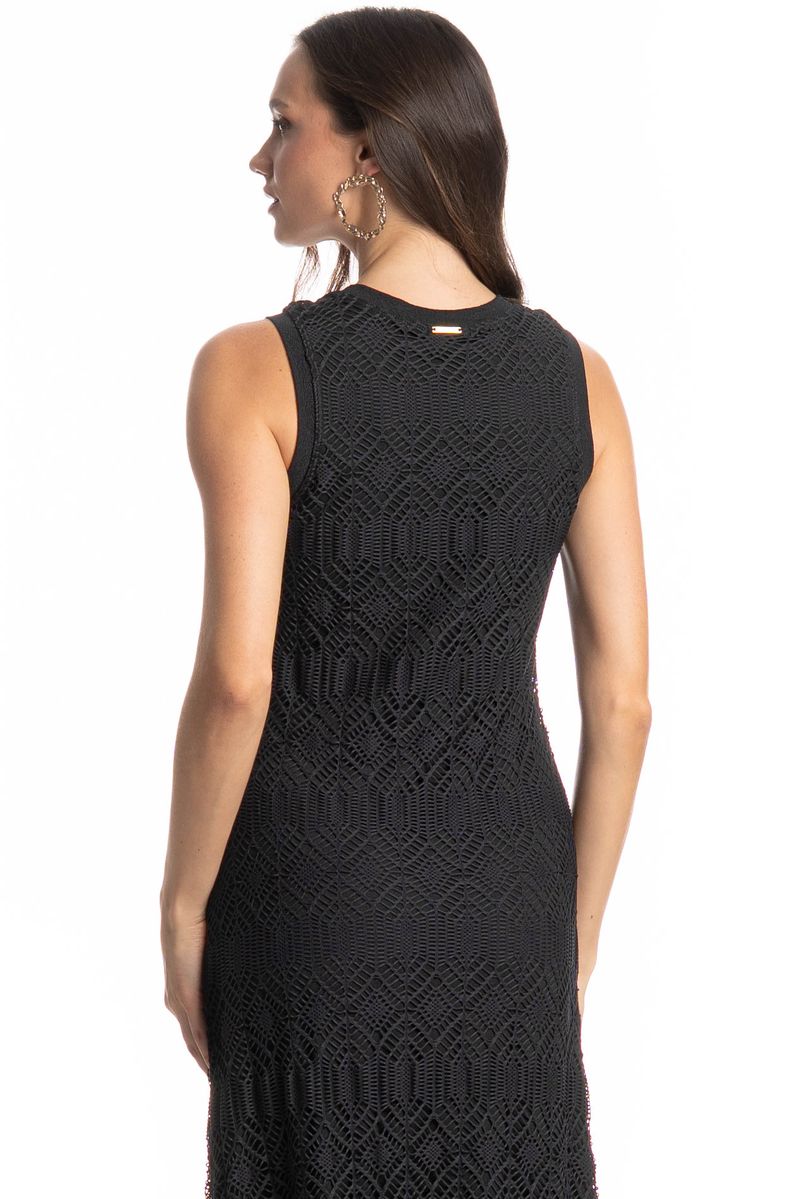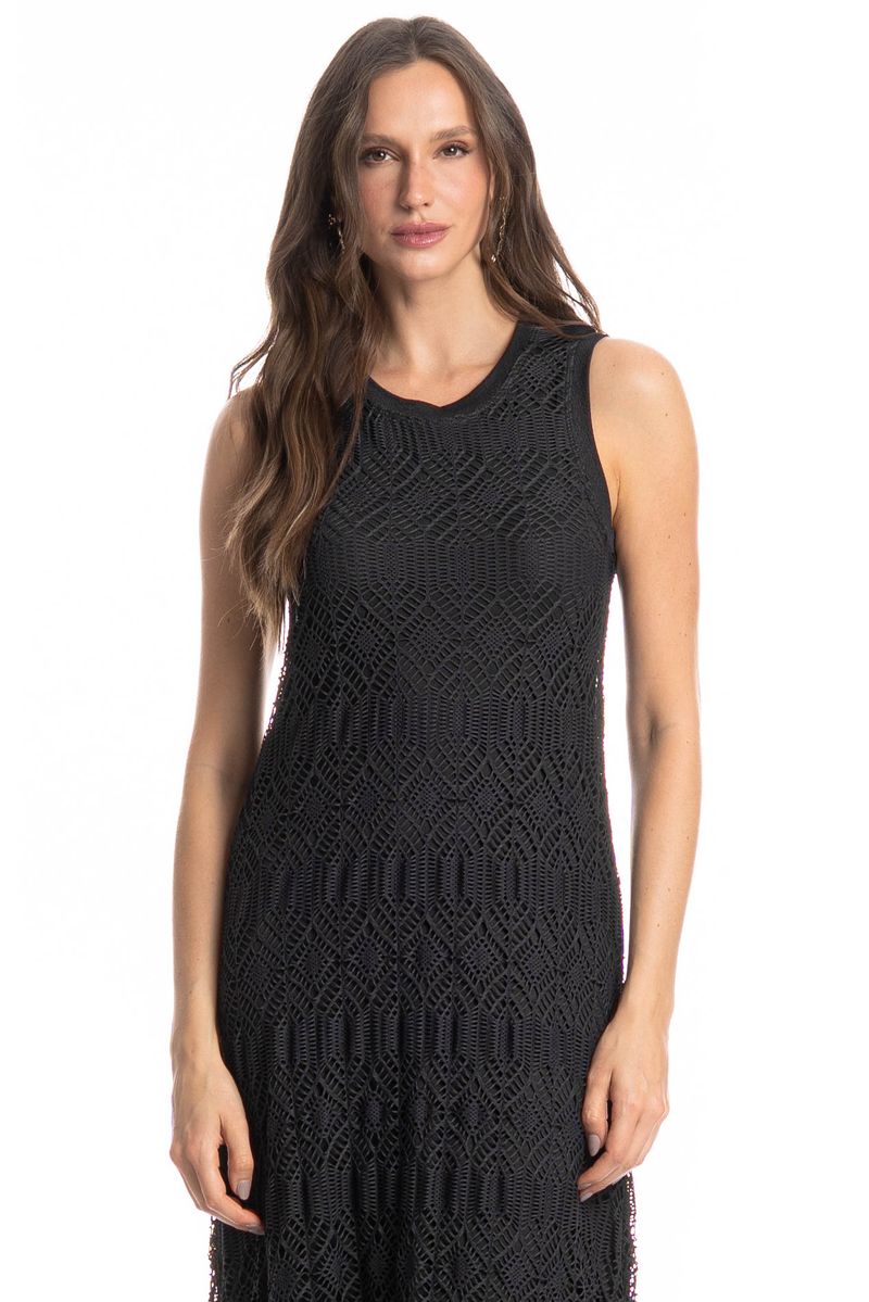 Confeccionada em Rendão, tecido vazado que confere uma aparência natural e única ao produto. Agradável ao toque e com caimento suave. Perfeito para peças de sobreposição e com leve transparência.