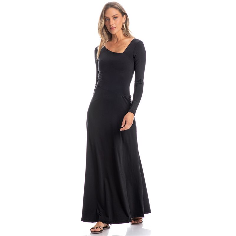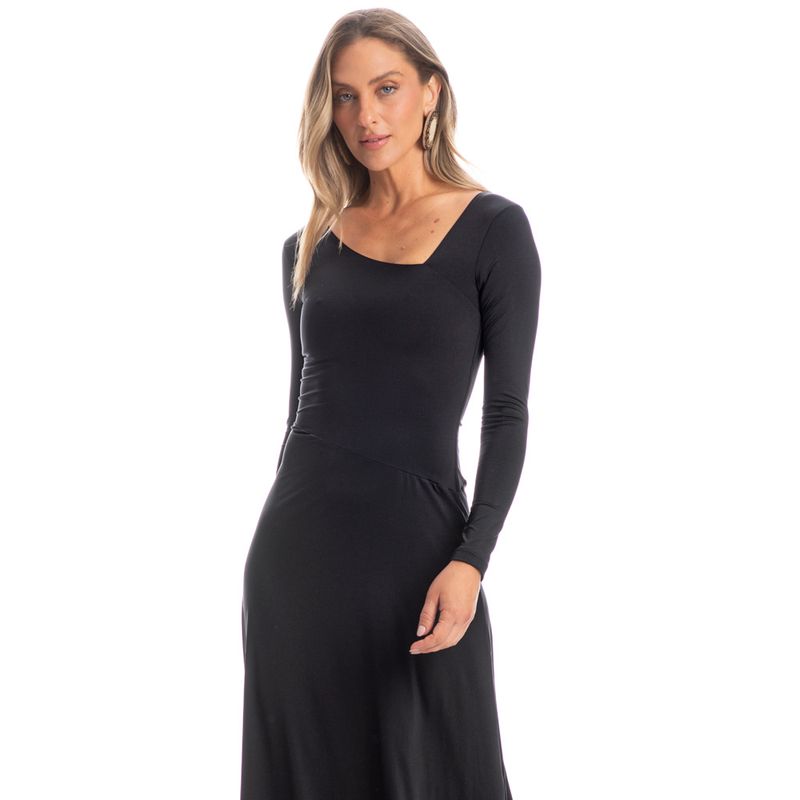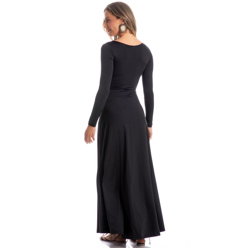 Vestido Longo Decote Assimétrico Cocais é elegância para os dias mais frios! Em modelagem muito confortável, o vestido Cocais possui comprimento longo com mangas longas, seu decote é duplo (com forro) e assimétrico com acabamento em elástico embutido, sua saia possui recorte também assimétrico, com leves franzidos garantido ainda mais fluidez à peça. O estilo e sofisticação que você merece!