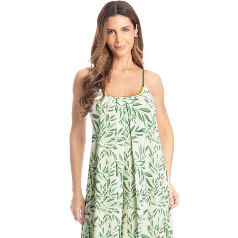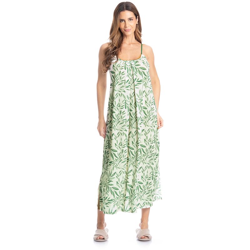 Vestido Midi Sybille Estampado Olivo é conforto para suas horas de descanso! Em modelagem extremamente confortável, e comprimento mídi, o vestido possui decote reto com leves franzidos, garantindo excelente fluidez, suas alças reguláveis. Suas laterais possuem abertura para um perfeito caimento. Uma peça moderna, para te acompanhar a qualquer momento do seu dia.