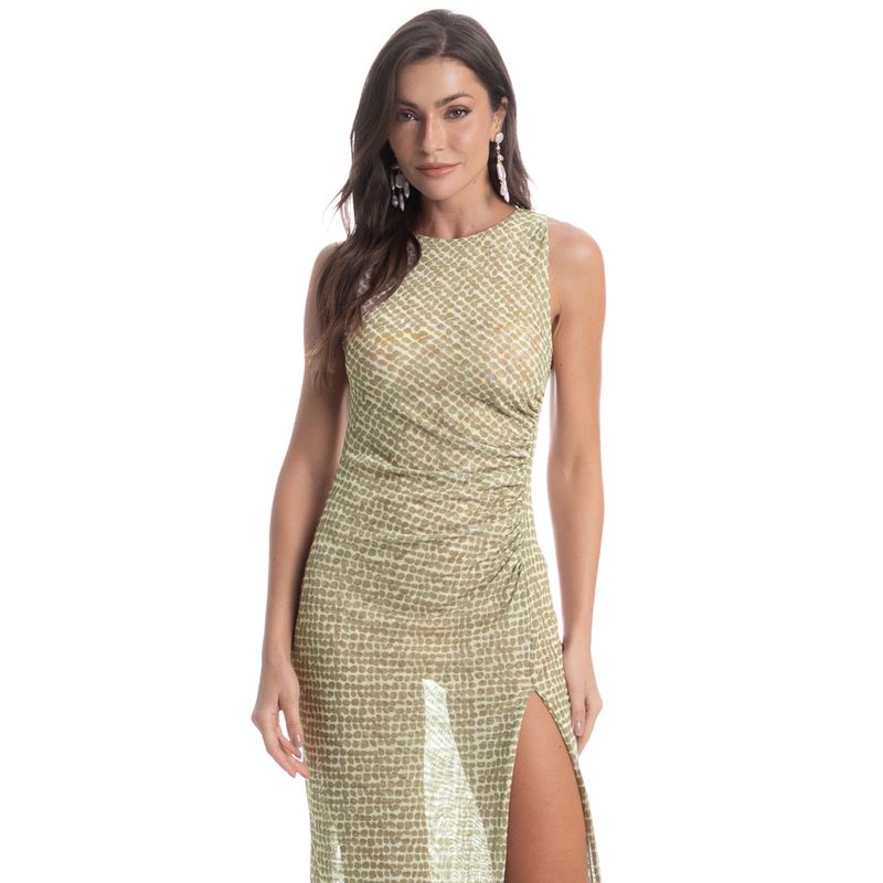 Vestido Midi Tule Franzido Conchas é estilo e tendência para seu verão! O Vestido Bambu possui comprimento midi, gola redonda mais alta, parte superior com tule duplo, e sua lateral da cintura conta com franzido que valoriza perfeitamente a silhueta. Sua saia possui fenda, garantido ainda mais estilo e deixando o vestido a cara do verão!