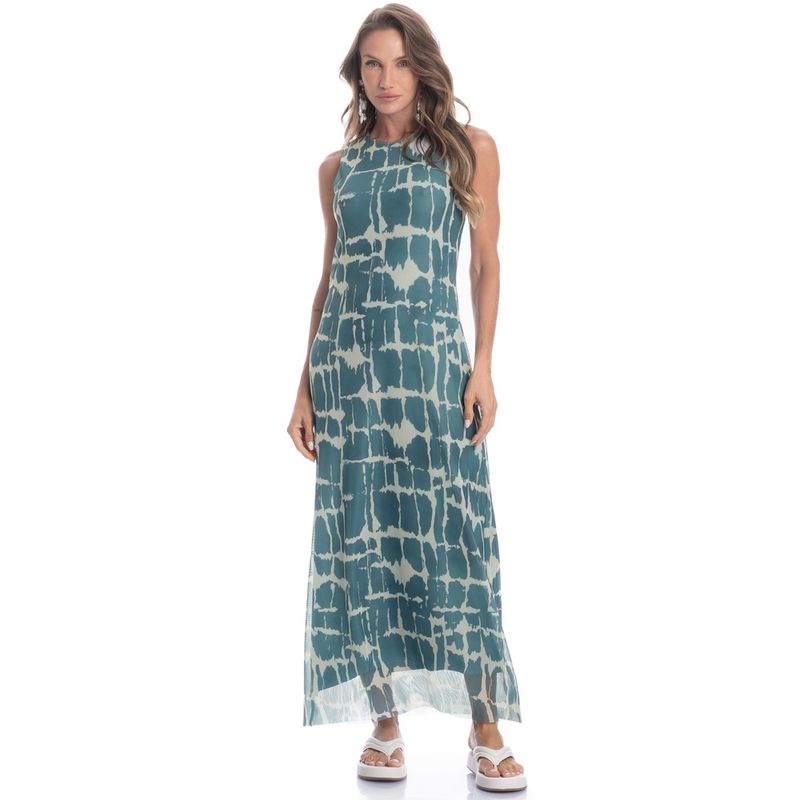 Vestido De Tule Salina é a definição de estilo e frescor para os dias mais quentes! Com modelagem regata ele valoriza a silhueta com leveza. O decote alto possui acabamento em elástico embutido, garantindo conforto e melhor ajuste. O comprimento é longo e conta com forro em todo o corpo. O destaque fica por conta da sua estampa exclusiva e encantadora, um verdadeiro charme! A escolha ideal para viver o melhor da estação com leveza e personalidade.